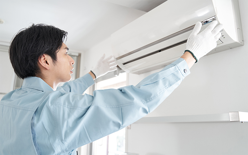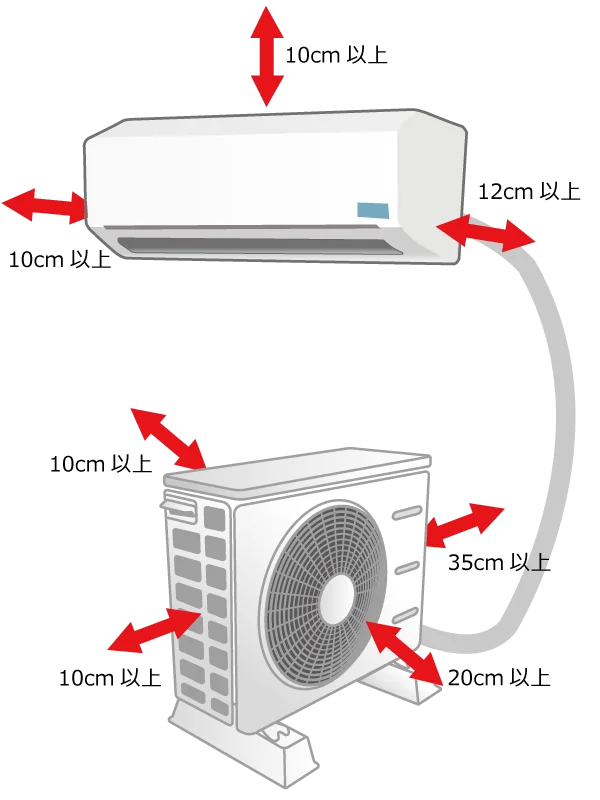 エアコンを取り付けする際は据付スペースが確保できるか確認が必要です。据付スペースはエアコンが正常に能力を発揮するために必要であり、スペースが確保できない場合は能力の低下や機器に不具合が生じる可能性があります。